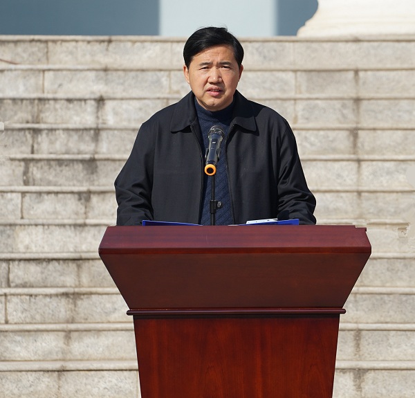 图为我院党组书记、检察长陈德东在揭牌仪式上作表态发言