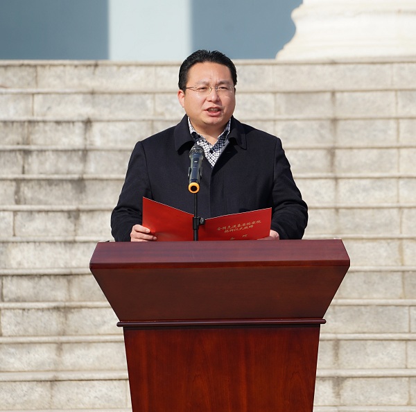 图为咸宁市检察院党组书记、检察长罗堂庆在揭牌仪式上致辞