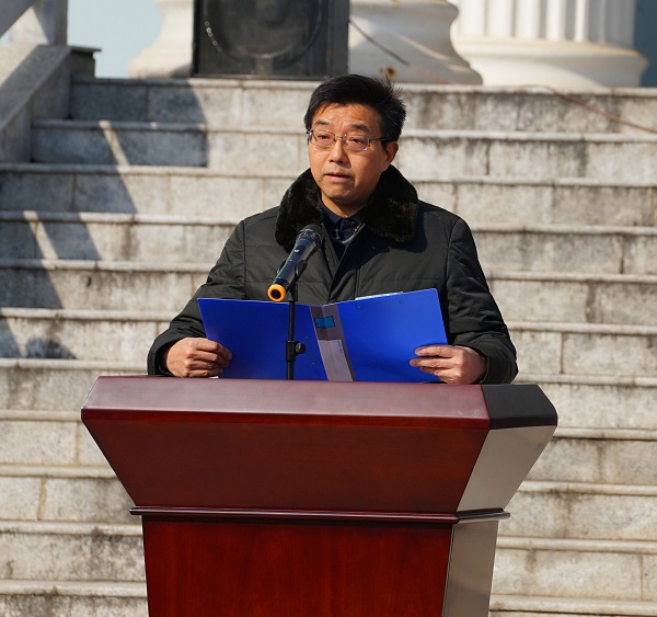 图为嘉鱼县委书记余珂在揭牌仪式上致欢迎辞